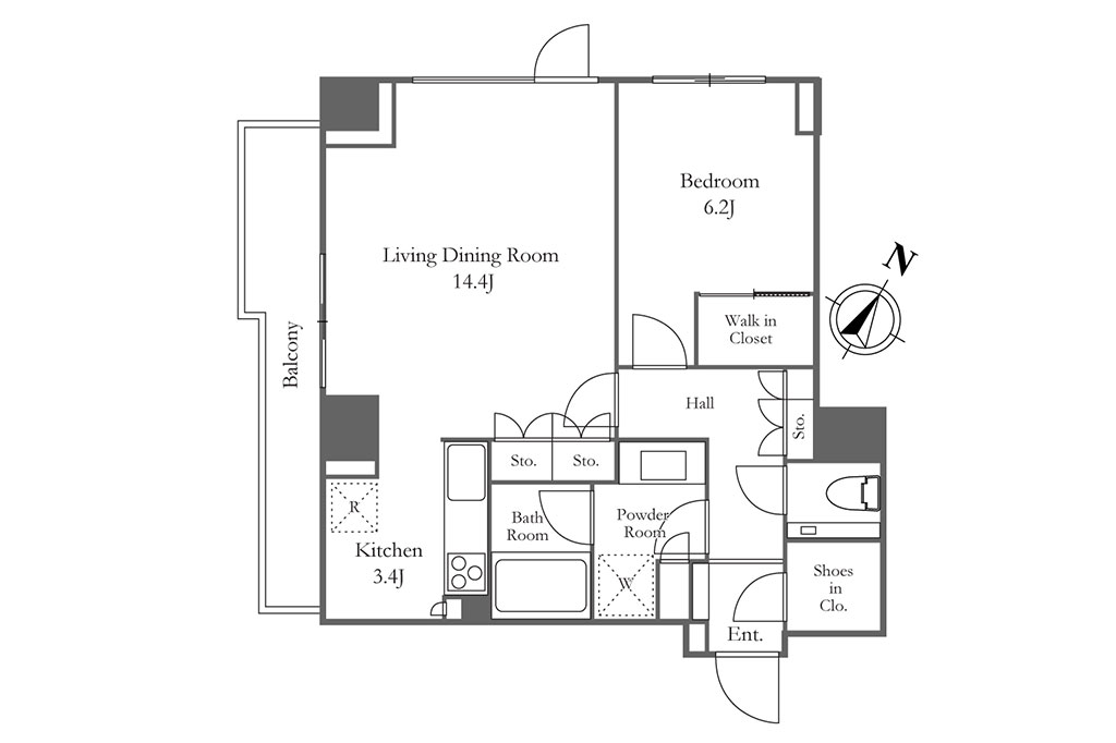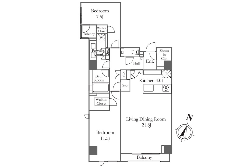見学していて気づいたのは2LDKの場合、2つの寝室が間に水回りを挟むなどして住戸内で離れて配置されている間取りが多いこと。それぞれの部屋の独立感を尊重した作りということでしょう。2人で住む場合はもちろん、一人で一室を寝室に、一室を趣味や仕事の部屋、あるいは来客用のゲストルームに使う場合にも使いやすいはずです。