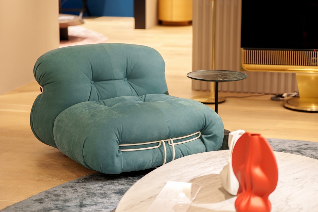 佐藤:例えば「SORIANA ソリアナソファ」。1969年にアフラ&トビア・スカルパがデザインした作品で、クッションを金属フレームで大胆に束ねた造形が特徴です。そして「SORIANA ソリアナソファ」はテクノロジーの面からも先端的です。最新モデルでは中材に再生PET素材を採用することでサステナビリティの観点からも現代に適応しています。Cassinaがミラノ工科大学とコラボレーションして設立した、革新的なデザインソリューションと持続可能な製品モデルへの移行のための研究開発拠点「Cassina LAB(カッシーナラボ)」の取り組みの結晶でもあります。