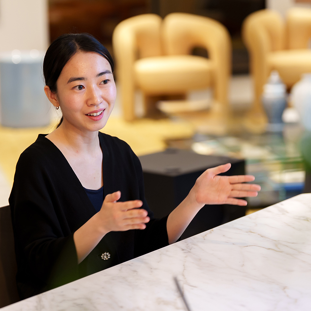 ラグジュアリーブランドの旗艦店が集まる青山通りに位置するショールーム。3フロアからなる店内には、アートピースとして扱われることもある家具の数々が並びます。この特別な空間を、カッシーナ・イクスシー レジデンシャル事業部の佐藤衣莉様、吉田彩乃様に案内していただきました。