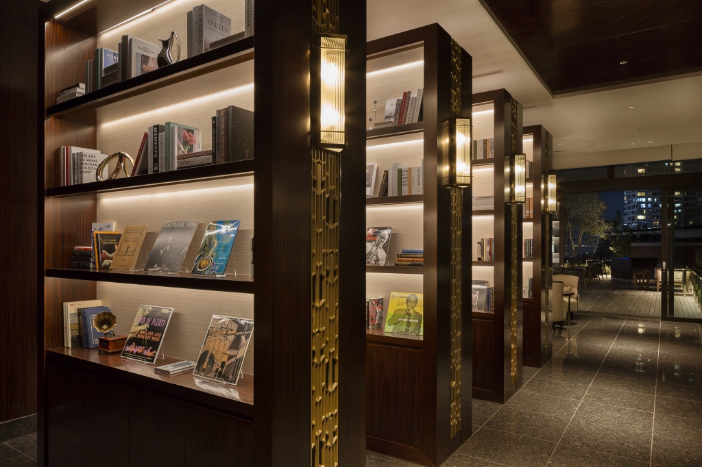 エグゼクティブルームおよびスイートルーム宿泊者専用のエグゼクティブラウンジは、ホテル5階に位置します。特筆すべきは、音楽やアート関連の書籍が並ぶライブラリースペースです。「エンターテインメントの図書館」をテーマにしたこの空間では、ティータイムやカクテルタイムを楽しむことができます。横浜の街を眺望できる開放感溢れる空間で、上質な滞在をお楽しみください。そして、エグゼクティブラウンジはテラスへの出入りが可能です。晴れた日には、心地よい風を感じながら横浜の街を眺められる、開放感に満ちたひとときを過ごせます。