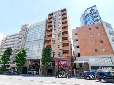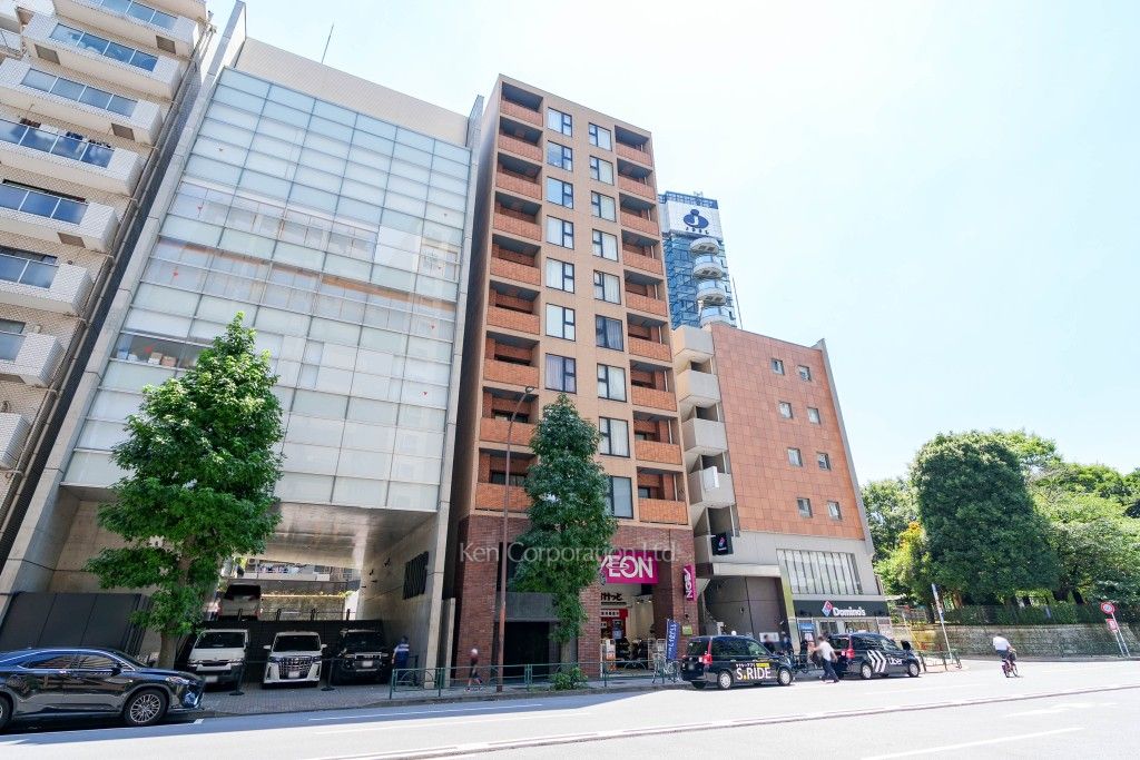 閑静な住宅街に佇む白一式のシンプルな外壁の「広尾マンション」。綺麗に手入れされた植栽が並ぶアプローチ。ガラス張りで開放的なエントランス。スーパー「miniピアゴ」まで徒歩5分(約450m)。恵比寿駅、広尾駅どちらにもアクセス可能な利便性。